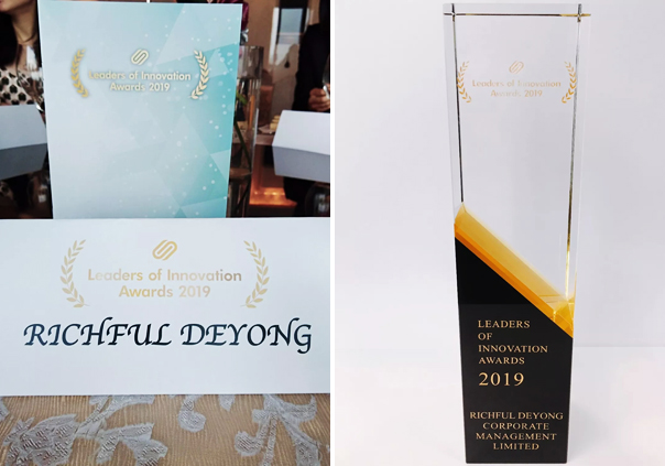 瑞豐德永獲授“Leaders of Innovation Awards 2019”榮譽(yù)獎(jiǎng)杯