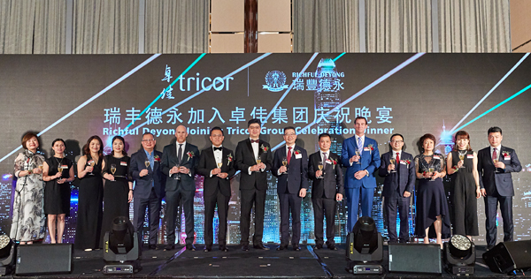 瑞豐德永加入卓佳集團(tuán)慶祝晚宴和簽約儀式于當(dāng)晚在香港四季酒店隆重舉行。瑞豐德永集團(tuán)創(chuàng)辦人麥?zhǔn)理?、集團(tuán)主席陳洪松、集團(tuán)首席執(zhí)行官龔彥斌、集團(tuán)執(zhí)行董事王英、集團(tuán)首席財務(wù)官何阿會與卓佳集團(tuán)行政總裁楊斌官、香港行政總裁溫佩麟等一行高管共同出席了當(dāng)天的慶祝晚宴。