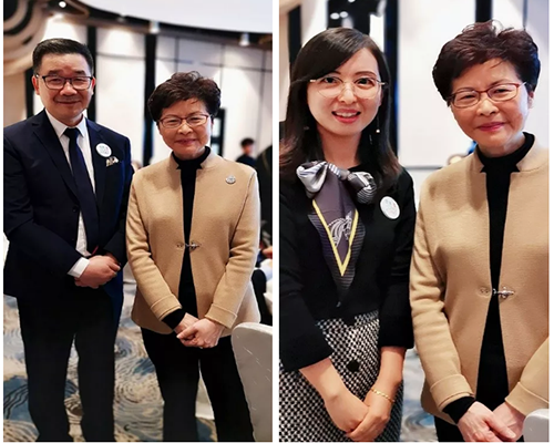 香港特首林鄭月娥女士(右)與瑞豐德永創(chuàng)始人Mr. Mak &上海公司總經(jīng)理馬麗女士現(xiàn)場親切交流