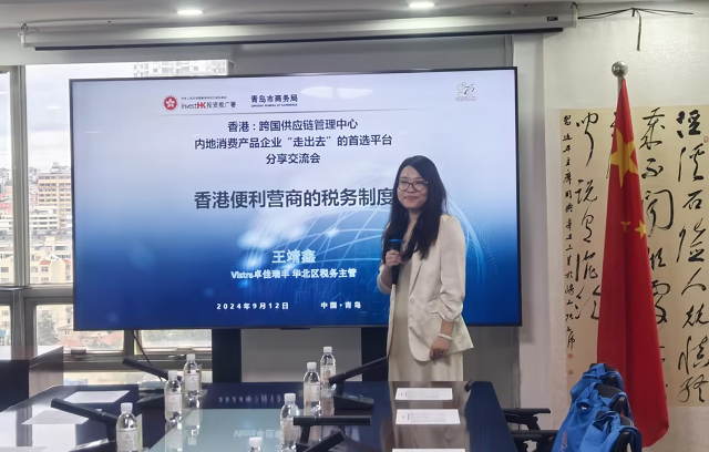 會(huì)議由青島市商務(wù)局黨組成員、副局長李鋒先生致歡迎詞。隨后,香港特區(qū)政府投資推廣署上海辦事處總監(jiān)林景富先生、香港特區(qū)政府投資推廣署總裁(消費(fèi)產(chǎn)品)梁耀云先生以及RICHFUL瑞豐華北區(qū)稅務(wù)主管王靖鑫女士,先后圍繞”香港的營商優(yōu)勢”、“香港消費(fèi)品市場的現(xiàn)況和機(jī)遇“及“香港便利營商的稅務(wù)制度”等三大主題進(jìn)行了解讀和深度分析,分享實(shí)踐經(jīng)驗(yàn)。