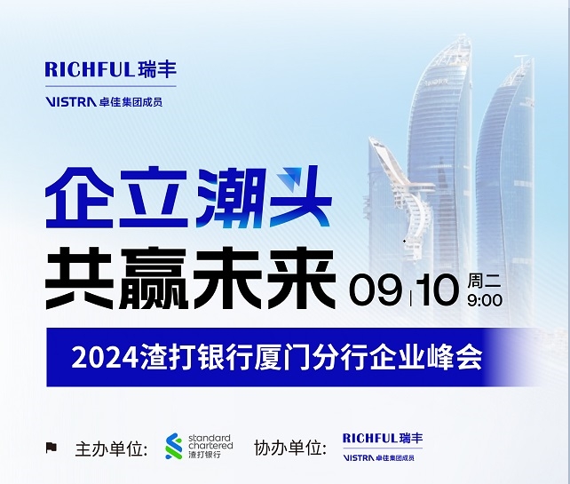 9月10日,由渣打銀行主辦,RICHFUL瑞豐協(xié)辦的“2024渣打銀行廈門分行企業(yè)峰會(huì)”活動(dòng)在廈門安達(dá)仕酒店成功舉行?,F(xiàn)場(chǎng)企業(yè)家們共同探討中企出海所面臨的機(jī)遇與挑戰(zhàn),助力企業(yè)“企立潮頭,共贏未來”。