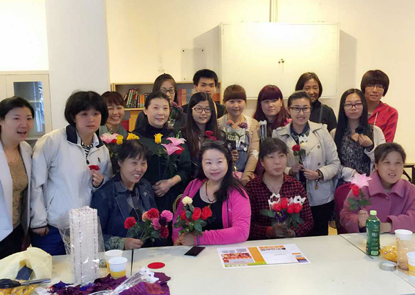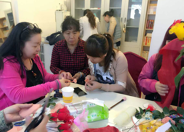 兩個(gè)小時(shí)的公益活動(dòng)很快就結(jié)束了,看著自己親手做出來(lái)的漂亮花兒大家都很開心也很滿足,同時(shí)也希望這些花兒可以給殘疾人媽媽帶去歡樂(lè)。