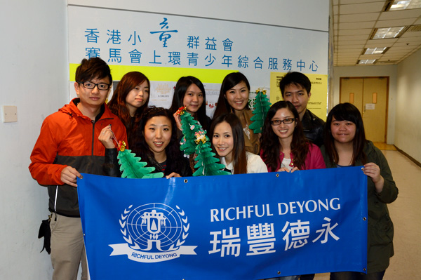 2013年,瑞豐德永集團(tuán)香港總部攜手慈善機(jī)構(gòu)開展了一系列慈善活動(dòng)。12月份,瑞豐德永集團(tuán)香港總部的員工去看望了香港小童群益會(huì)的小朋友,為他們帶去歡笑和溫暖。