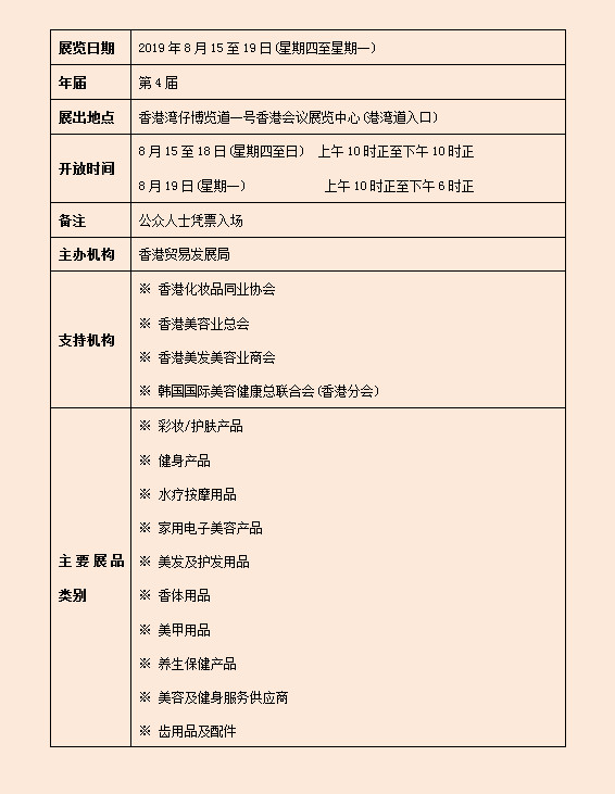 在美容及健康產(chǎn)品的龐大市場(chǎng)需求帶動(dòng)下,香港貿(mào)發(fā)局美與健生活博覽為業(yè)界提供一個(gè)理想平臺(tái),向公眾展示趨時(shí)產(chǎn)品,并借此機(jī)會(huì)與消費(fèi)者互動(dòng),提高品牌知名度,并推出新產(chǎn)品。2018年展會(huì)匯聚超過 100家展商,涵蓋化妝品、護(hù)膚產(chǎn)品、護(hù)發(fā)用品及保健產(chǎn)品等。博覽與香港貿(mào)發(fā)局美食博覽、香港貿(mào)發(fā)局香港國際茶展及香港貿(mào)發(fā)局家電.家品.博覽同期舉行,2018年合共吸引510,000名參觀人士。