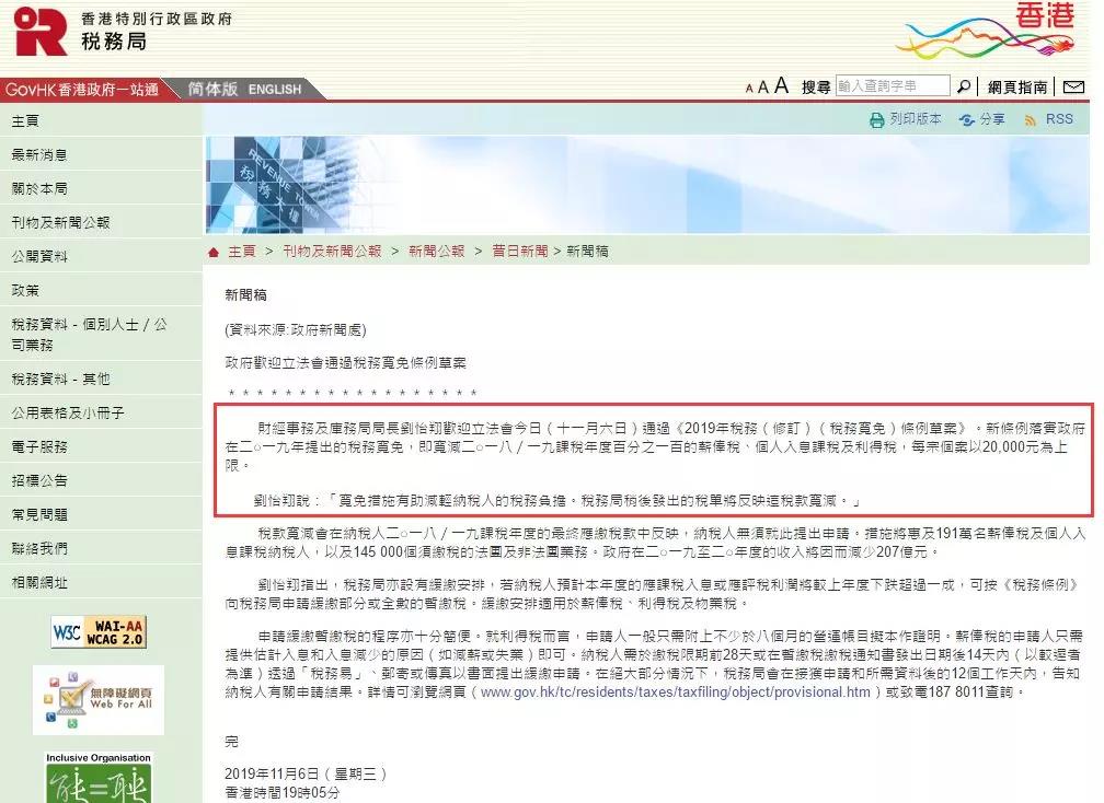 通知|香港立法會(huì)通過(guò)《2019稅務(wù)寬免條例》,最高可獲免稅2萬(wàn)!