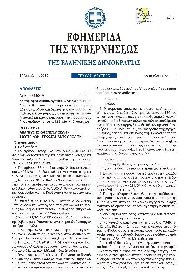 時(shí)報(bào)消息稱:當(dāng)?shù)貢r(shí)間11月14日,希臘政府發(fā)布公報(bào),正式公布“黃金簽證”的新標(biāo)準(zhǔn)。關(guān)于擴(kuò)大向非歐盟公民發(fā)放五年居留(即黃金簽證)標(biāo)準(zhǔn)的聯(lián)合部長級(jí)決定。