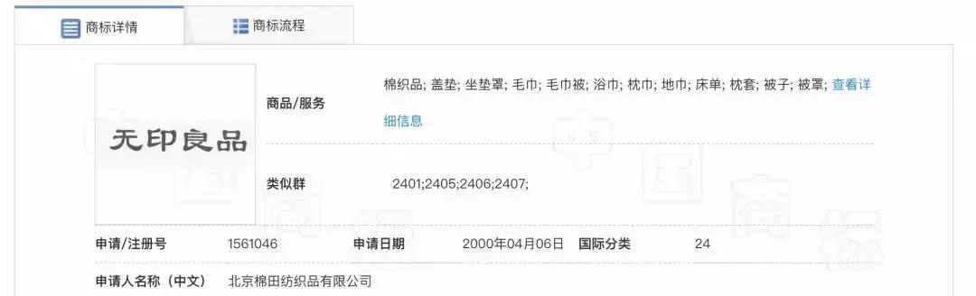 2004年,這個商標轉(zhuǎn)讓給了棉田公司。棉田公司下面投資了一家公司,叫北京無印良品公司,這家公司是2011年成立的。