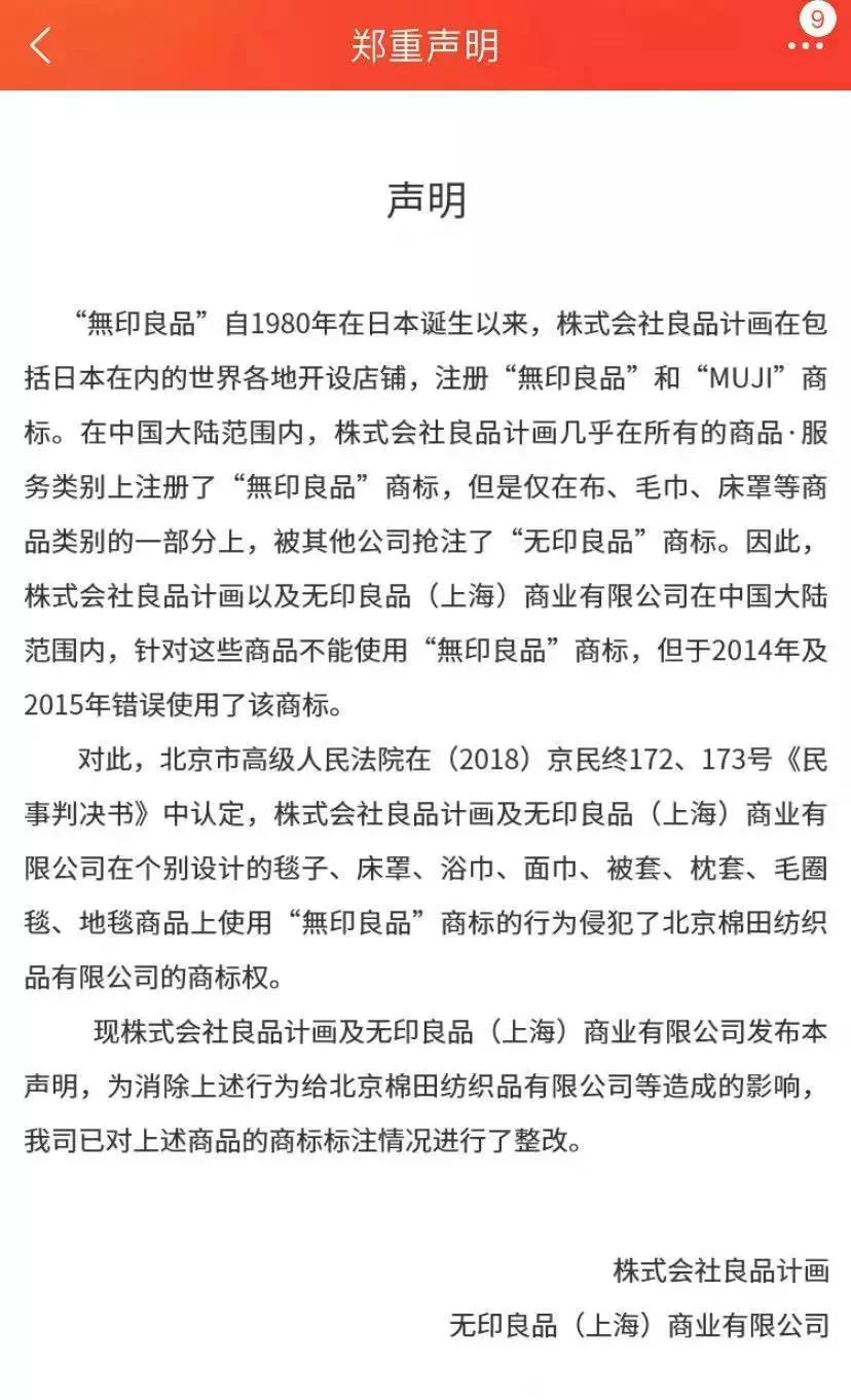 中國青年報搜索發(fā)現(xiàn),在天貓“無印良品MUJI官方旗艦店”,日本無印良品已作出相關(guān)聲明。