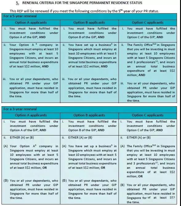 申請人除了保持政府要求的投資之外,還必須同時滿足:①開設(shè)企業(yè),雇員達(dá)10人,年支出200萬新幣以上;②每位申請人每年在新加坡居住一半以上的時間。