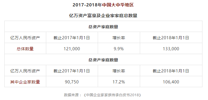 根據(jù)貝恩公司和招商銀行聯(lián)合發(fā)布的第五期《中國私人財富報告》,中國的私人財富已迅速增長至165萬億元人民幣(約合24萬億美元),是2006年的六倍多。中國現(xiàn)有400多位億萬富翁,僅次于美國。而這些財富的創(chuàng)造者——中國第一代創(chuàng)業(yè)者們在走過三四十年的奮斗之后,陸續(xù)步入了“知天命”、“耳順”之年,他們創(chuàng)造并積累下來的大量財富也已經(jīng)進(jìn)入了代際傳承的關(guān)鍵時期。公開數(shù)據(jù)顯示,未來五至七年,約有300萬民營企業(yè)家會把家族財富傳遞到下一代手中。