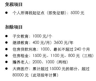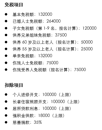 ↓中國內(nèi)地個稅減免項目↓