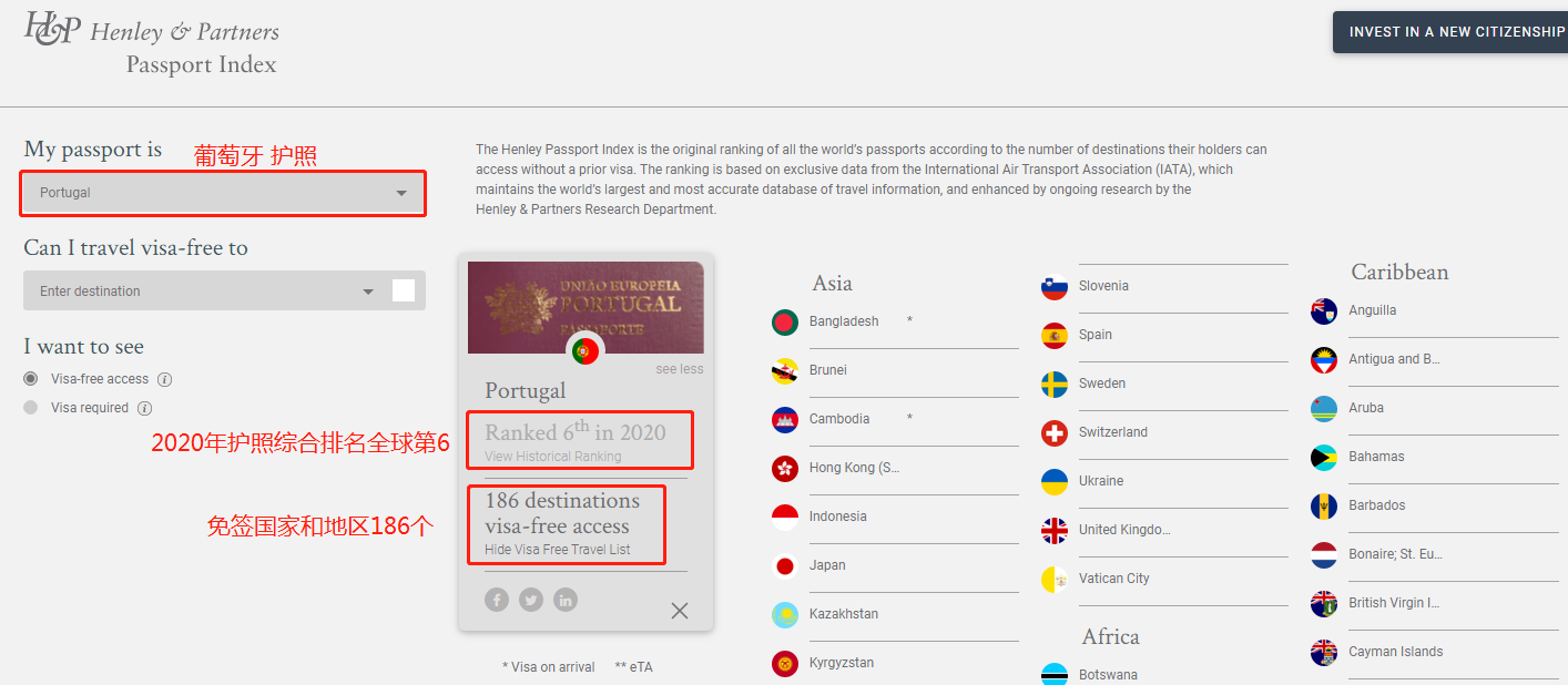 (亨利護照指數(shù)-葡萄牙護照相關指標)