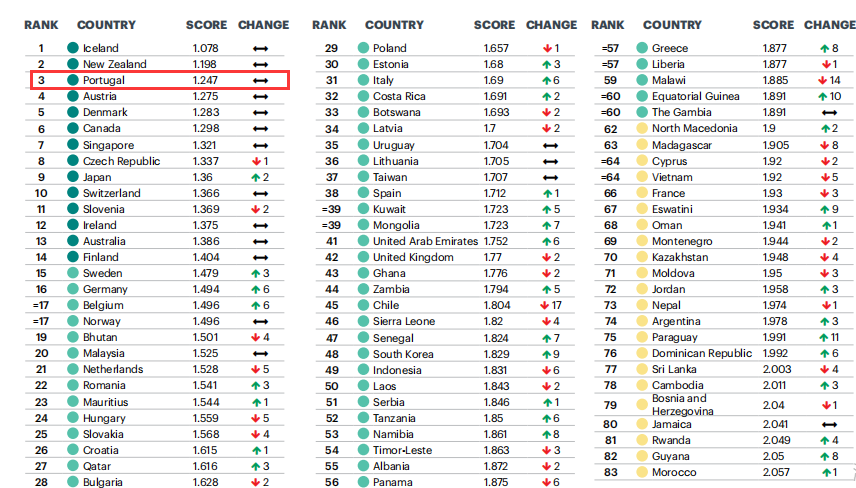 2020年6月10日,世界經(jīng)濟與和平研究所出版了最新的“2020全球和平指數(shù)報告”,葡萄牙排名全球第三!也是歐盟中最安全的成員國!89%的人認為葡萄牙全國是安全的