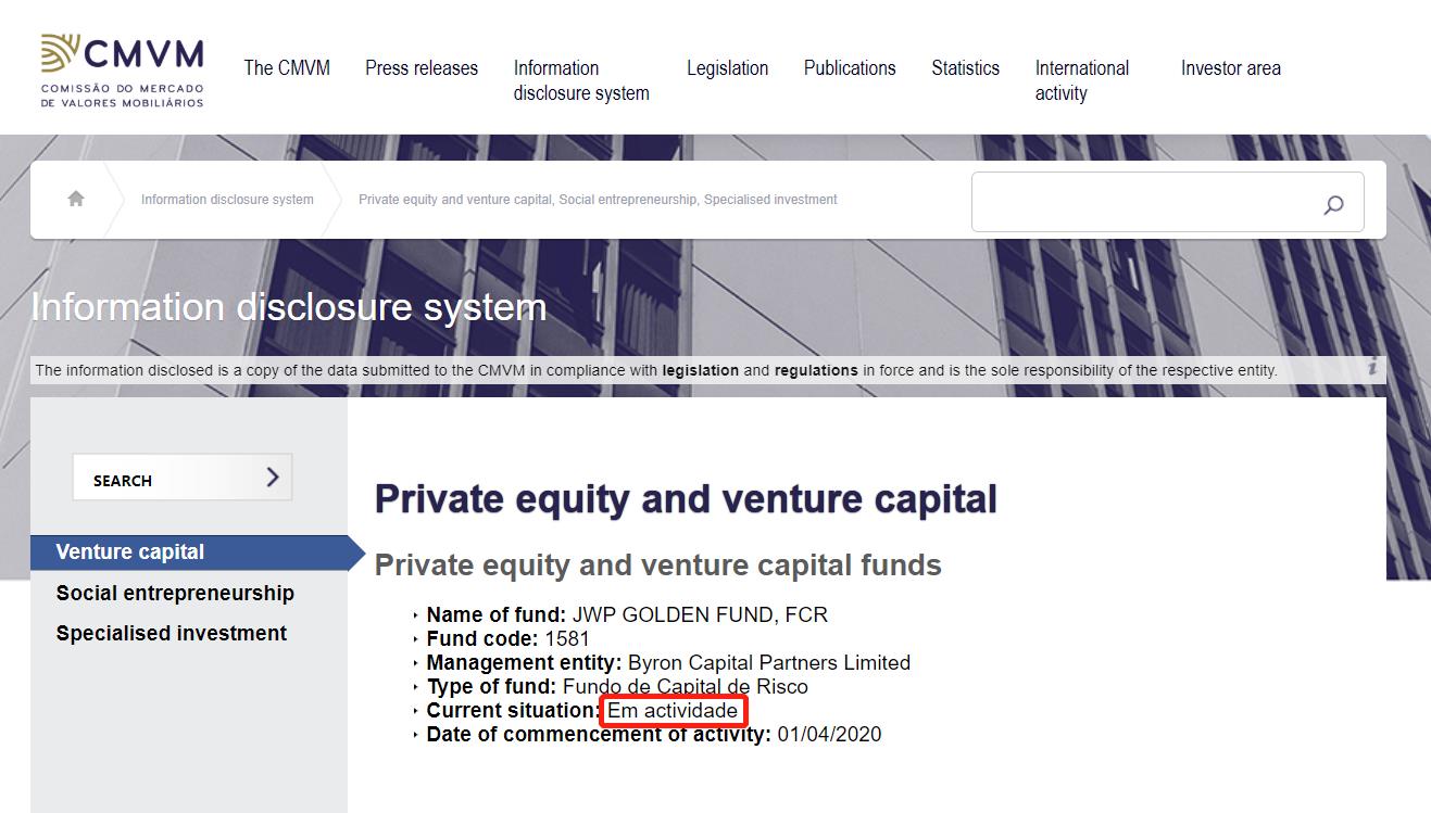 該基金項目為葡萄牙的合法私募股權基金項目,在葡萄牙證券監(jiān)督市場委員會(CMVM)中可查詢到獲批的官方公式信息