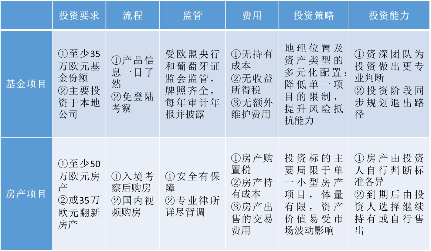 葡萄牙“黃金居留許可”基金項目介紹