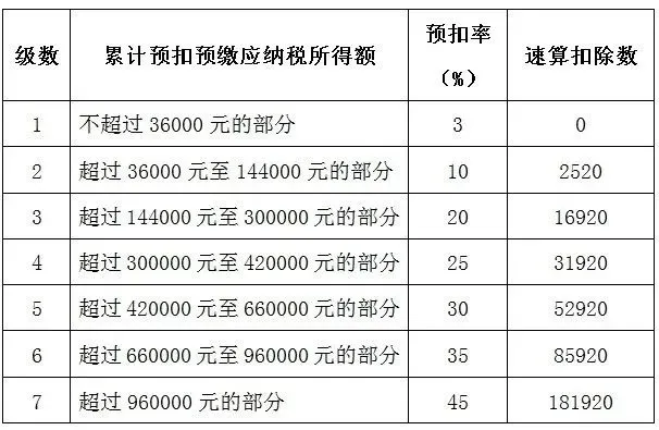 無(wú)免稅額的個(gè)人所得稅稅率表