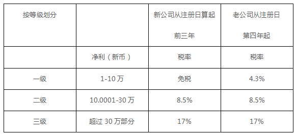 新加坡對(duì)企業(yè)所得稅有許多減免與激勵(lì)措施,其中包括對(duì)前三年少于1000萬(wàn)新幣收入的小型企業(yè)免征所得稅。