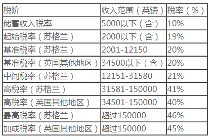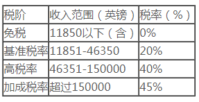 般情況下,英國(guó)稅收居民的個(gè)人所得稅稅率如下: