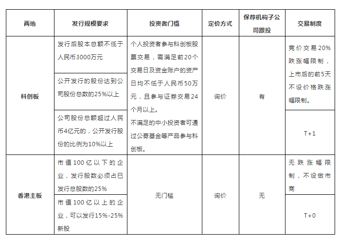 這些條件的放寬也使科創(chuàng)板進(jìn)一步與港股和納斯達(dá)克市場(chǎng)的機(jī)制靠攏,但是依舊存在一定的差異,我們拿港交所來進(jìn)行對(duì)比: