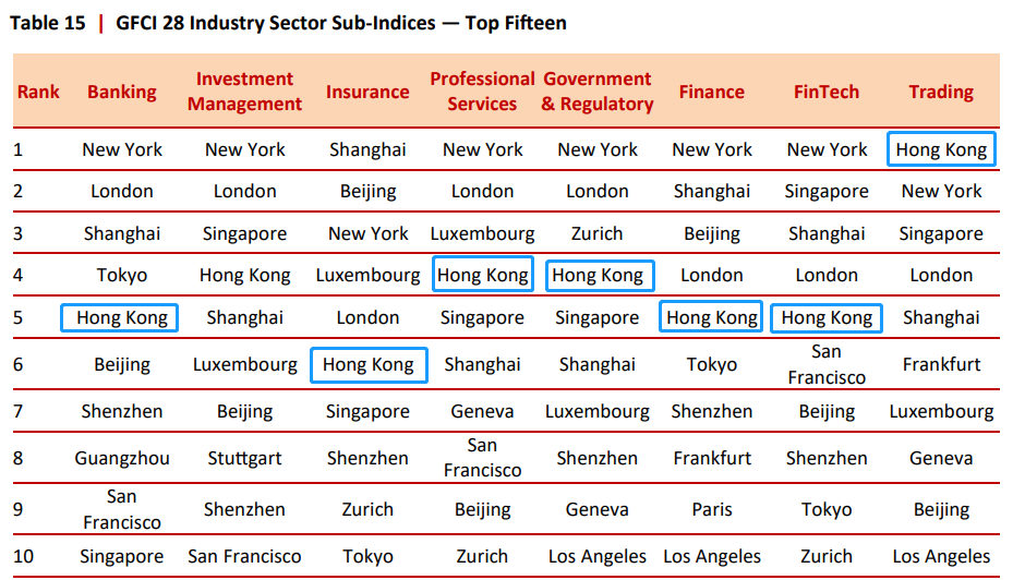 9月25日,英國智庫Z/YenGroup與中國(深圳)綜合開發(fā)研究院聯(lián)合發(fā)布的第28期“全球金融中心指數(shù)”(GFCI 28)報(bào)告顯示,香港以743的綜合評分位列全球第五。