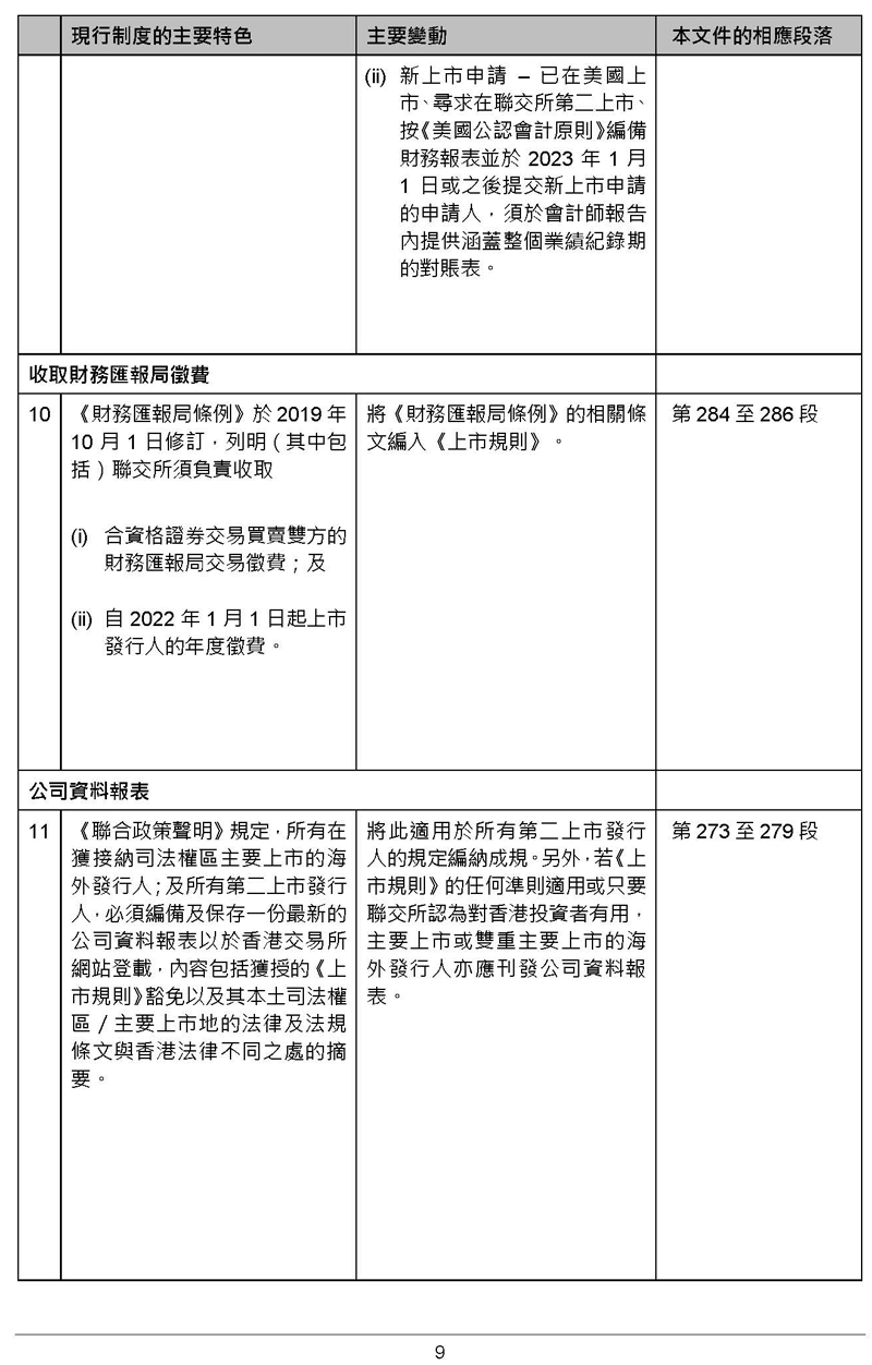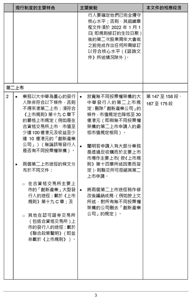 沒有不同投票權(quán)架構(gòu)的大中華發(fā)行人可作第二上市,而毋須證明其是“創(chuàng)新產(chǎn)業(yè)公司”,及上市時(shí)最低市值將改為30億元港幣(若能證明其在合資格交易所有至少五個(gè)完整會(huì)計(jì)年度的良好合規(guī)紀(jì)錄)或100億元港幣(若能證明其在合資格交易所有至少兩個(gè)完整會(huì)計(jì)年度的良好合規(guī)紀(jì)錄)。