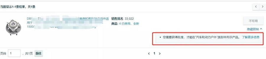 在頁面的右下角會(huì)出現(xiàn)顯示限制,點(diǎn)擊出現(xiàn):“您需要獲得批準(zhǔn),才能在****類別中列示產(chǎn)品?!?br />