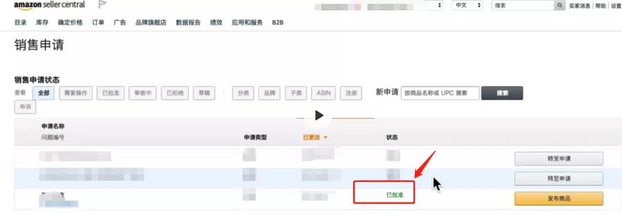 在亞馬遜賣家后臺(tái)搜索框中輸入——需要審批的類別和商品。