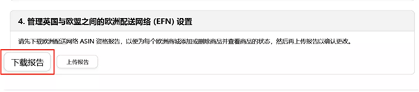 ② 您可以選擇部分商品退出:進(jìn)入到【亞馬遜物流歐洲整合服務(wù)庫存】頁面,點擊“report”下載“商品狀態(tài)報告”,將部分商品退出歐洲配送網(wǎng)絡(luò)(EFN)