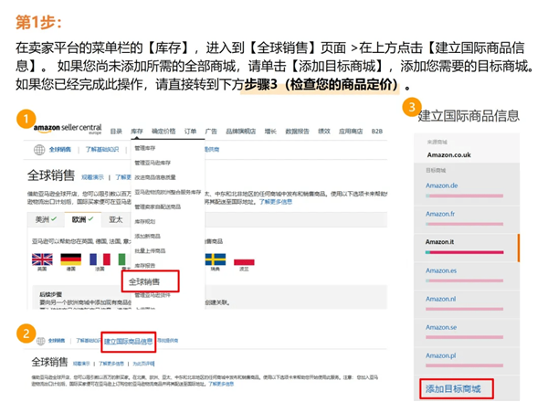 步驟二:在英國店鋪以及以下任一或所有歐盟店鋪中發(fā)布商品信息:德國、法國、意大利和西班牙