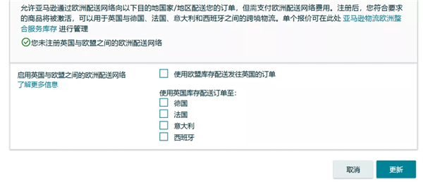 您也可以點擊【設(shè)置】>【亞馬遜物流】>【跨境物流設(shè)置】, 激活您想要啟用歐洲配送網(wǎng)絡(luò)(EFN)的國家。