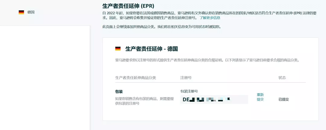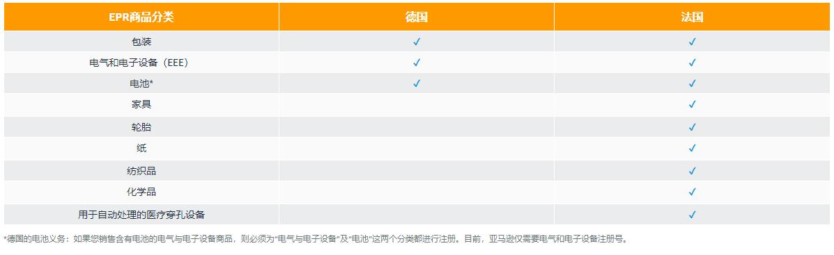 3. 相同的EPR商品在不同站點上需要分開注冊:對于在亞馬遜德國站、法國站上銷售的EPR商品分類,每個國家/地區(qū)都有不同的注冊要求、注冊流程以及授權(quán)機構(gòu),因此德國和法國需要分開注冊,并不通用。