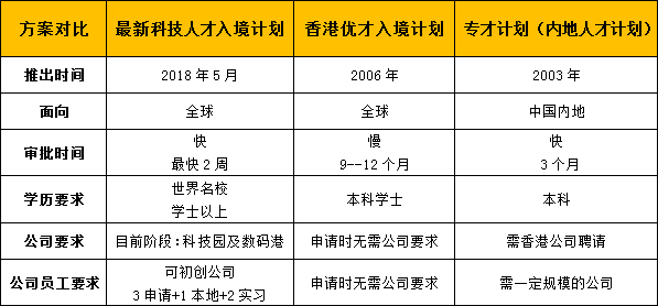 三、科技優(yōu)才,香港優(yōu)才、香港專才方案對(duì)比
