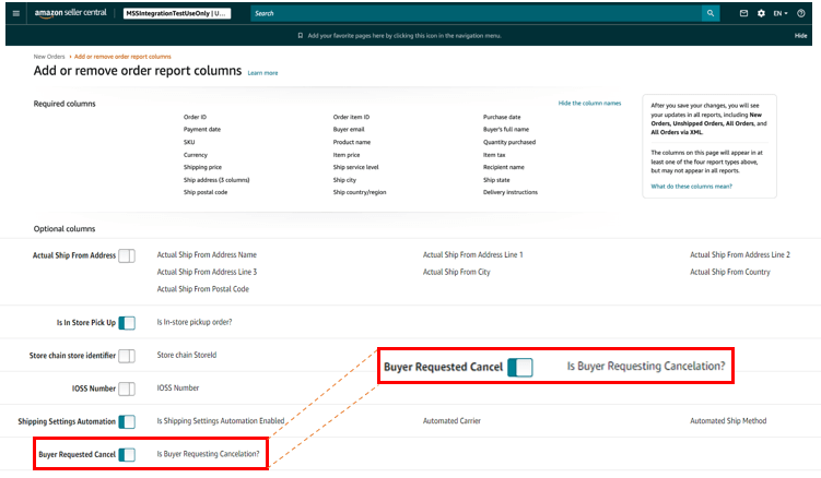 您可以通過訪問添加或移除訂單報告列,打開【買家請求取消】字段的切換選項,在訂單報告中查看有買家發(fā)起取消請求的訂單。
