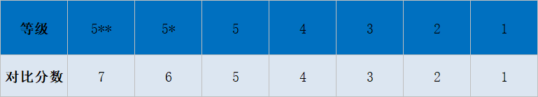 (2)得分為五個(gè)等級[1-5級],第5級為最高等級,獲第5級的考生中表現(xiàn)最佳會(huì)獲得[5**] ,隨后表現(xiàn)較佳的則以[5*]表示,表現(xiàn)低于第1級的會(huì)標(biāo)示[不予評價(jià)]。