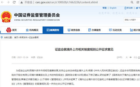 2021年12月24日,證監(jiān)會就境外上市相關(guān)制度規(guī)則公開征求意見并且公開了答記者問,在第七條回復(fù)中明確了在遵守境內(nèi)法律法規(guī)的前提下,滿足合規(guī)要求的VIE架構(gòu)企業(yè)備案后可以赴境外上市。具體規(guī)則有《國務(wù)院關(guān)于境內(nèi)企業(yè)境外發(fā)行證券和上市的管理規(guī)定(草案征求意見稿)》(簡稱《管理規(guī)定》),《境內(nèi)企業(yè)境外發(fā)行證券和上市備案管理辦法(征求意見稿)》(簡稱《備案辦法》)。