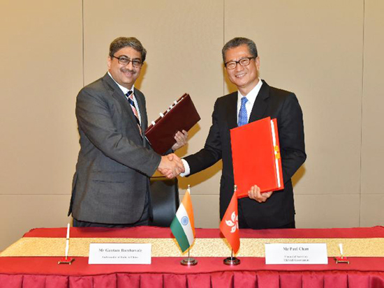 3月19日,香港財(cái)政司司長陳茂波代表香港特別行政區(qū)政府在香港與印度駐華大使Gautam Bambawale簽署全面性避免雙重課稅協(xié)定(全面性協(xié)定),標(biāo)志著特區(qū)政府在擴(kuò)闊香港稅收協(xié)定網(wǎng)絡(luò)方面繼續(xù)取得成果。
